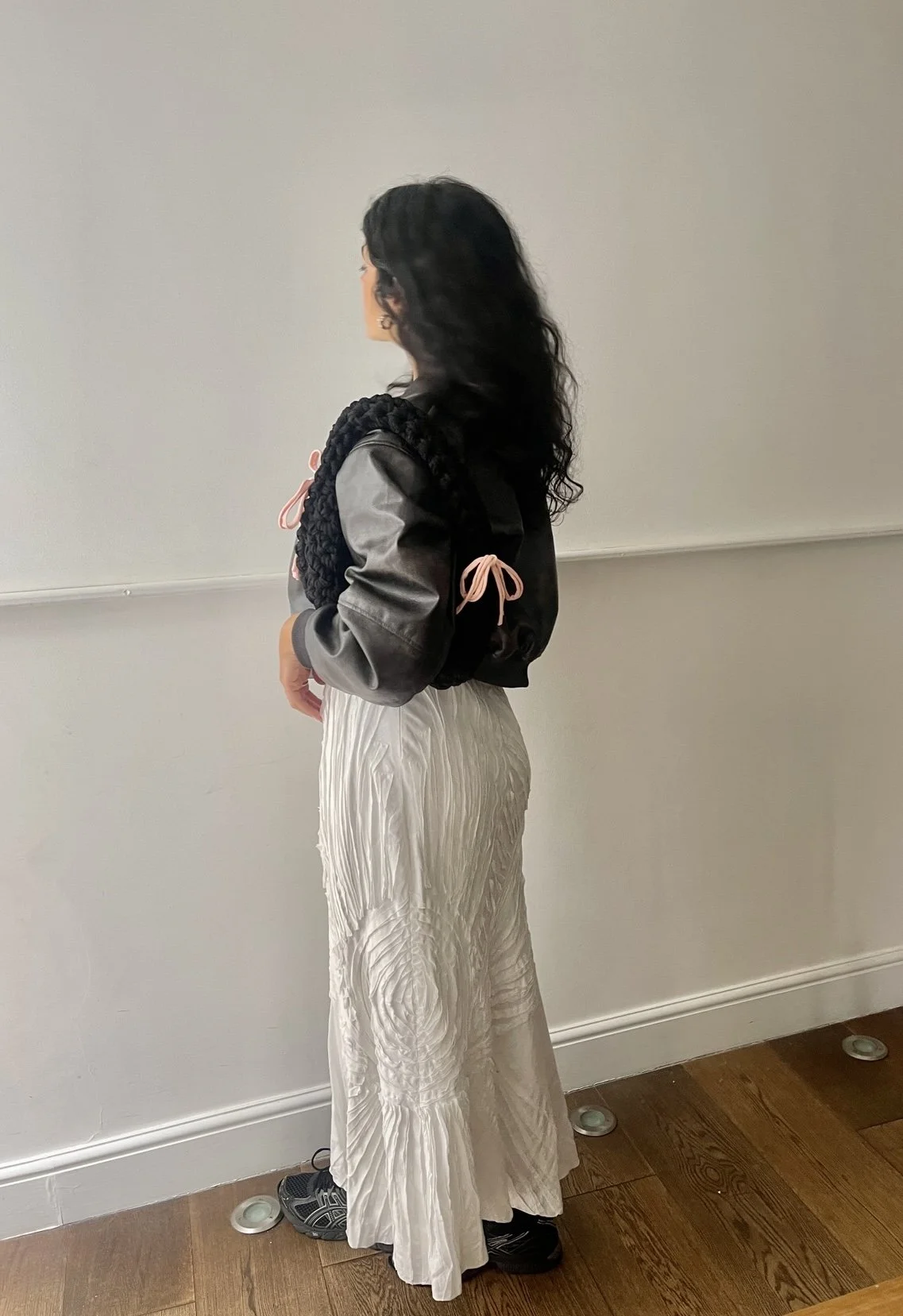 During lockdown when she was having a wardrobe clear-out decided to turn the materials into something completely new. From then on, she decided to make the pieces accessible to everyone and show that slow, sustainable fashion using materials that do not cause a negative impact to the environment can fit current styles!