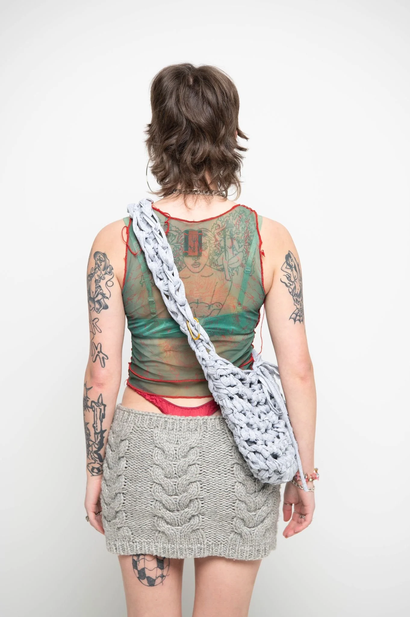 Now, she works from a home studio in London with only donated clothing materials and recycled yarns, using the method of crochet to make cute, wearable accessories.