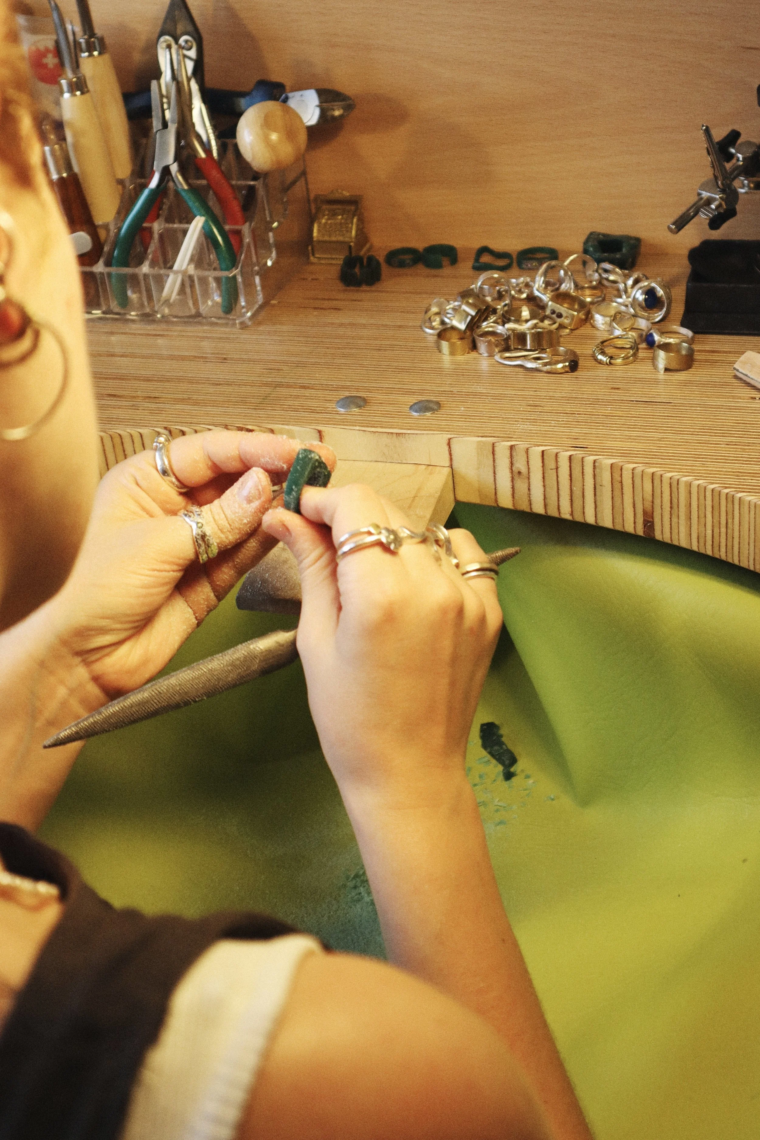Olive Ashford is a jeweller based in East London. Specialising in the wax-carved method of jewellery making, much of Olive's work is created though playful experimentation with materials and the happy accidents that tend to occur through this. With a background in Fine Art, Olive views jewellery as wearable sculpture that celebrates the human body.