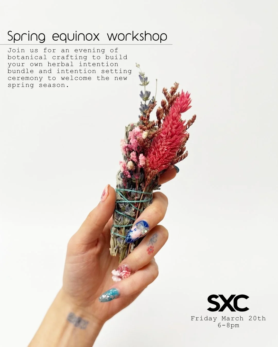 Join us building botanical bundles with herbs and dried flowers, decorating them with charms and trinkets,